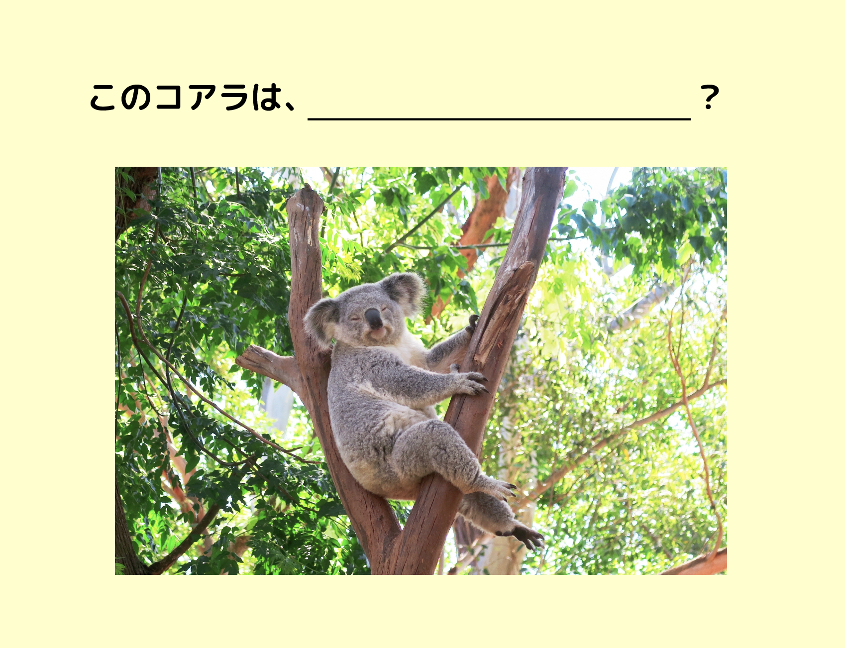 -このコアラは…なんだろう。どんな夢を見ているか?とか。