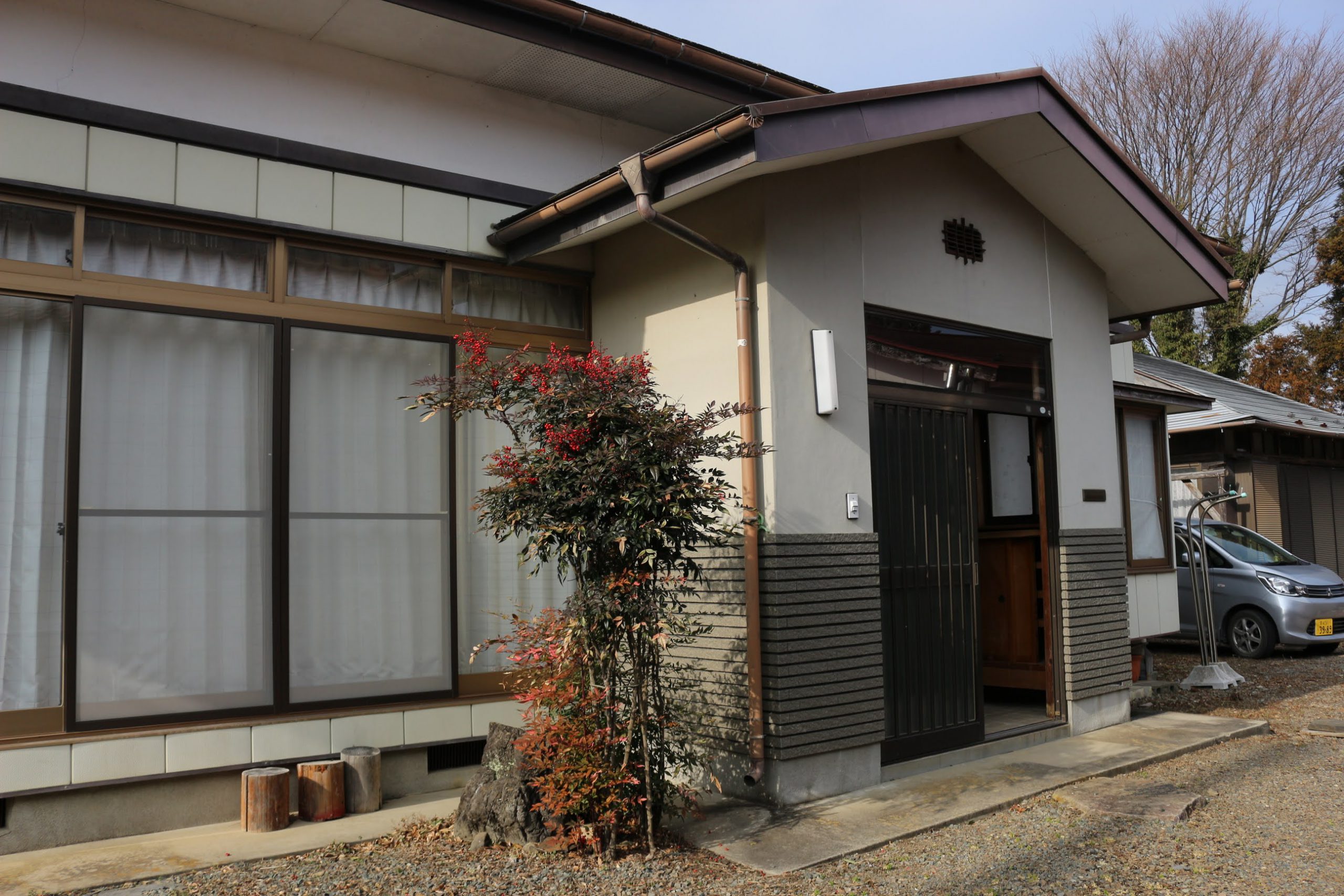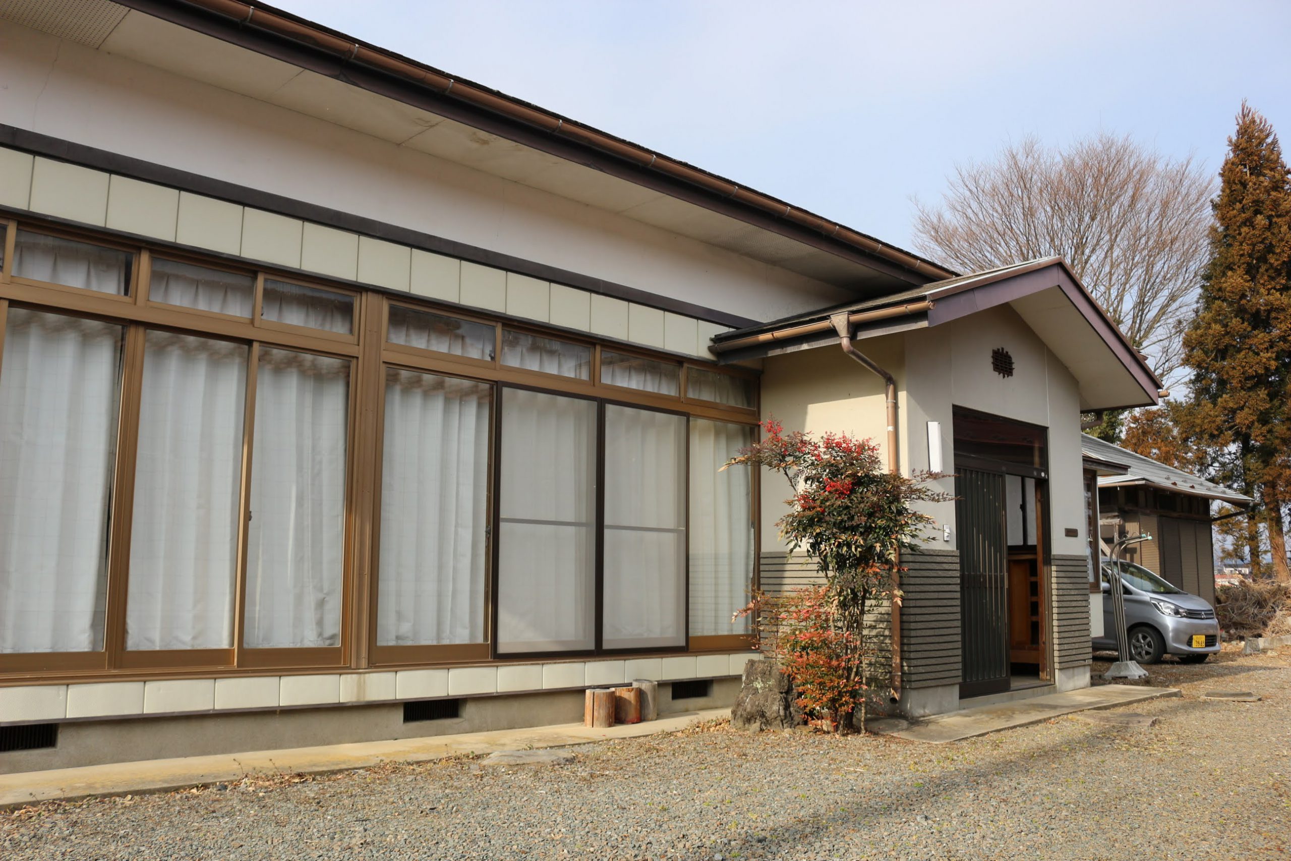 きれいに整った敷地に建つ平家のお家はしっかりとした作りで庭も広く、車もたくさん停めることができます。