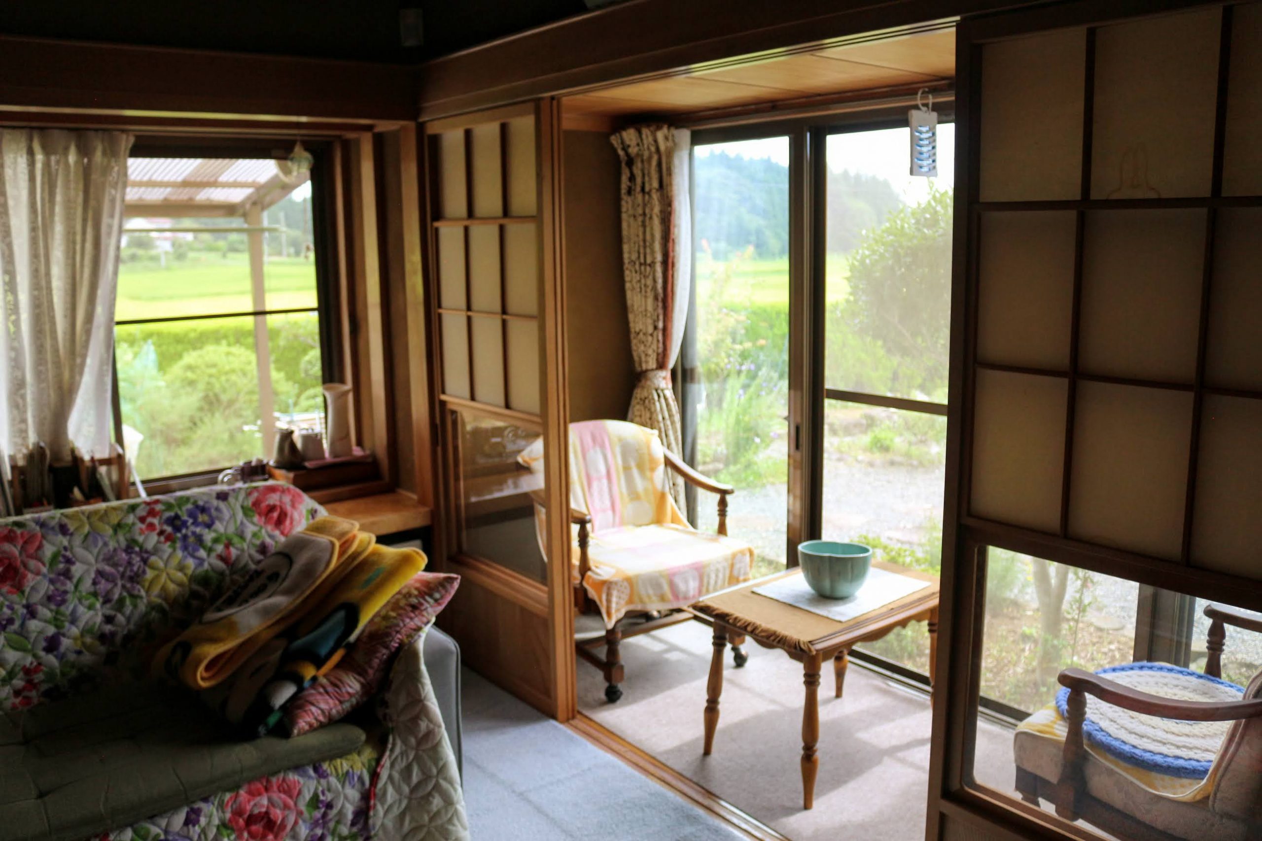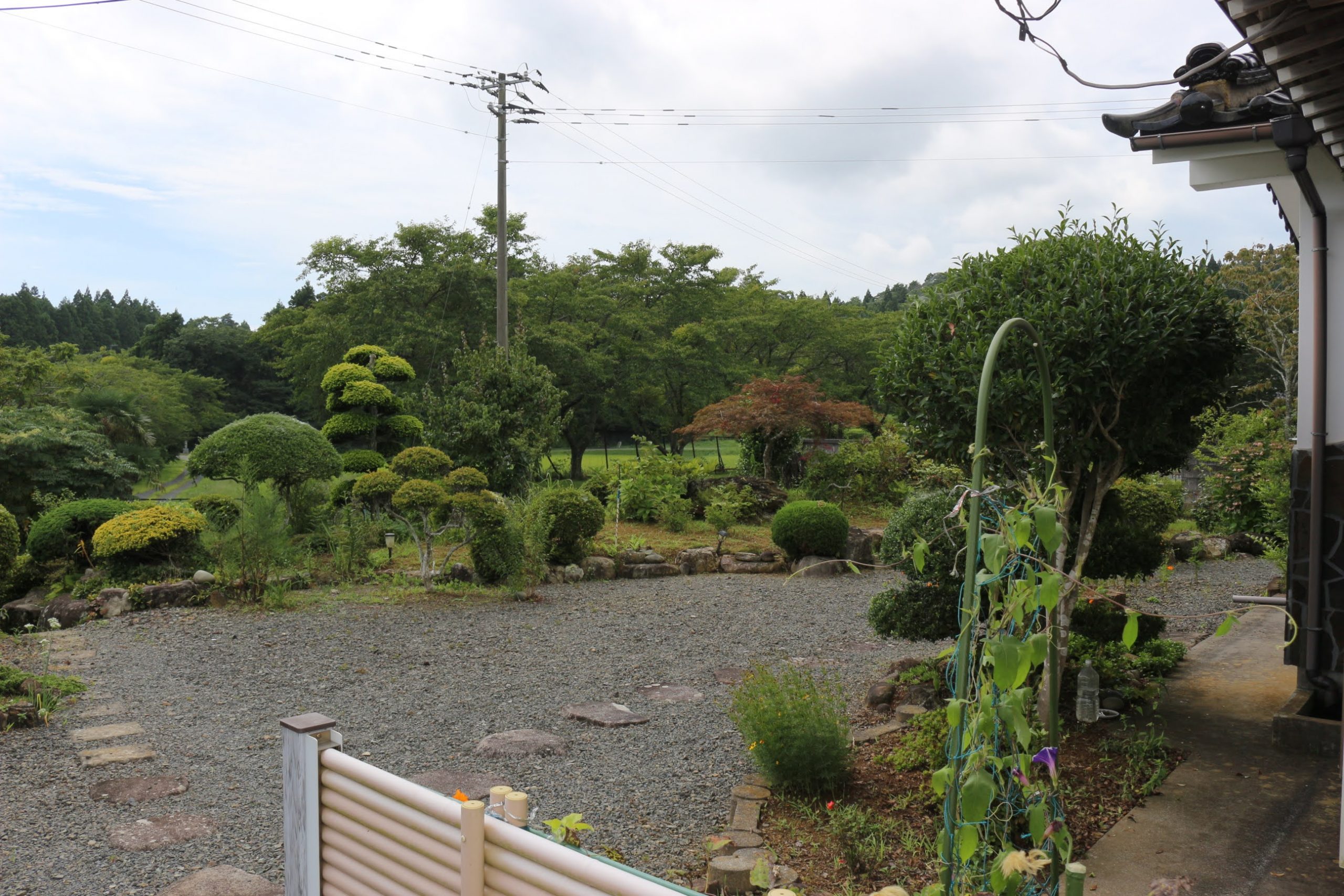 緑豊かな農道沿い、きれいに管理された敷地内には素敵なお庭と畑もあります。