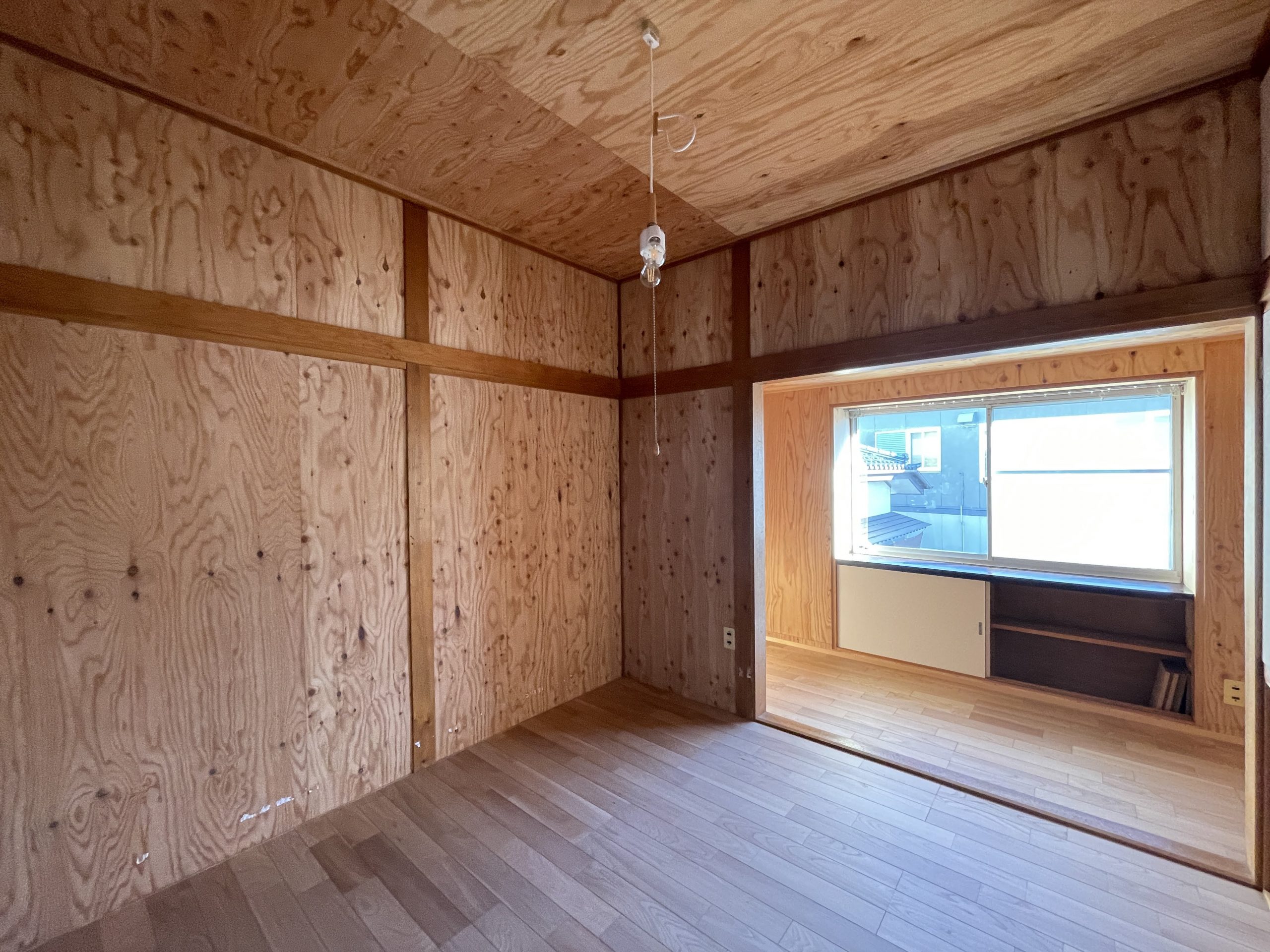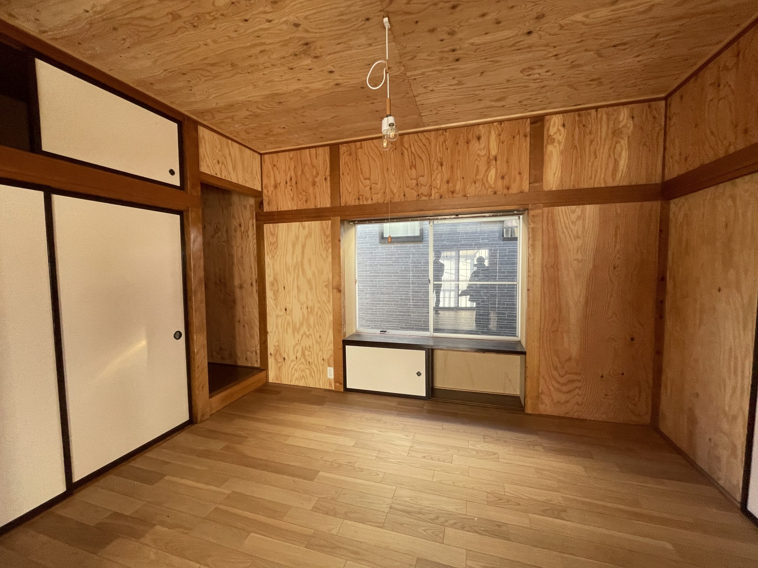 床を張替え、部屋の仕上げには木材を張りレトロ感を残しました。