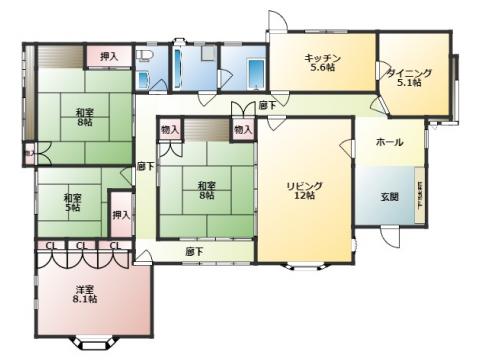 大島に建つ、和室 洋室どちらもある広々としたお家。