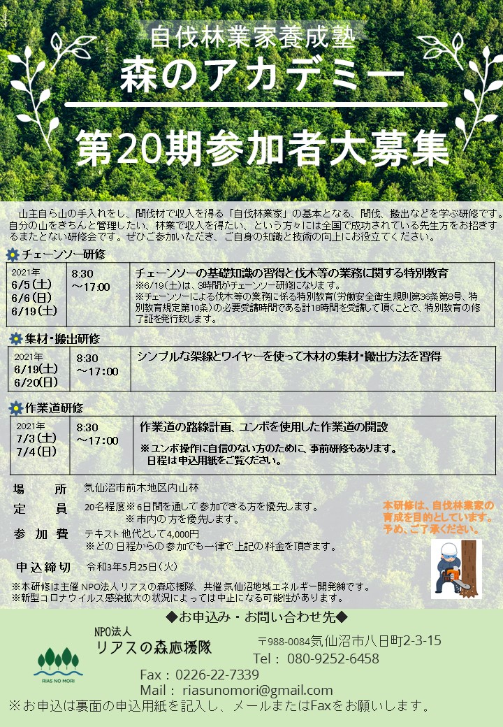 *第20期森のアカデミー募集チラシはこちら