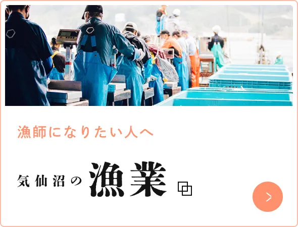 海とともに生きる、気仙沼。 宮城県の最北端に位置する気仙沼市は、研修先のような沿岸漁業・養殖業(牡蠣、ホヤ、ホタテ、ワカメなど)だけでなく、 遠洋マグロ船、カツオ船、サンマ船などの基地になっています。漁師さんをはじめ、水産加工業、造船や製氷・製函、航海中の衣料・食料品店などもあり、水産業に支えられたまちです。 多くの人が海と関わり、海とともに生きています。 「海が好きで、将来は漁師になりたい」 「漁師に憧れるけど、仕事の詳しいことってわからない・・・」 そんな方に朗報です。 今年も気仙沼で、短期滞在型の漁業研修プログラムを実施します。 日常と離れて、海に、漁業に触れながら過ごす貴重な体験をしてみませんか? 研修先は牡蠣養殖や定置網漁を営む漁師さんのもとへ。 早起きは必須ですが、朝日を浴びながら、海に出て、身体を動かすのは気持ちいいですよ。 海のまち気仙沼で、きっと、素敵な出会いが待っているはず。 あなたの参加をお待ちしています。 漁業研修に関する詳細についてはこちらから https://job.fishermanjapan.com/event/7840/
